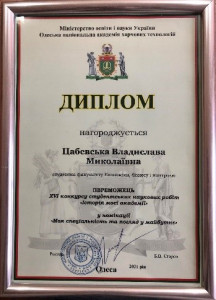 За результатами конкурсу студентка спеціальності «Облік та оподаткування» Цабевська В.М. під керівництвом доцента кафедри цифрових технологій фінансових операцій Стасюкової К.В., стала переможницею у номінації «Моя спеціальність та погляд у майбутнє».